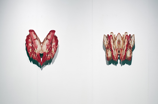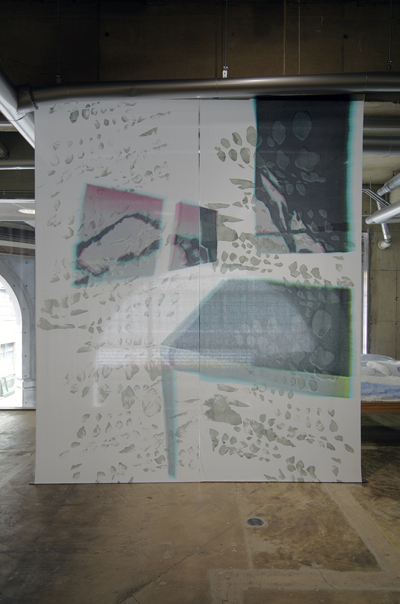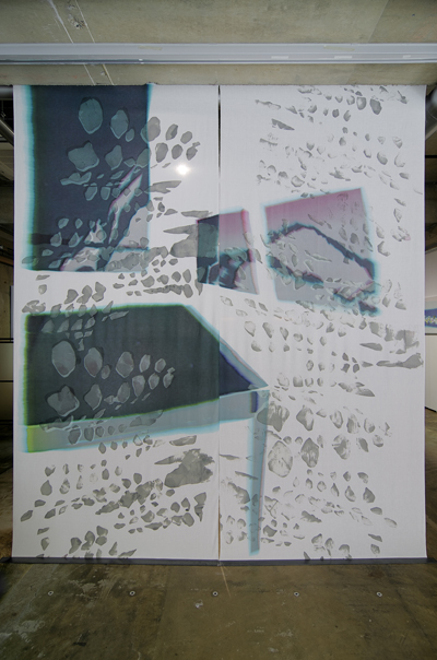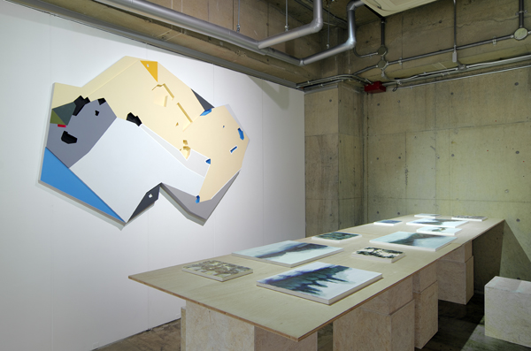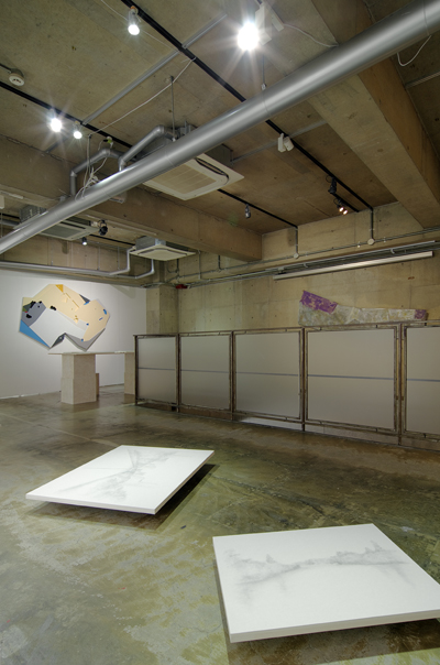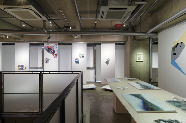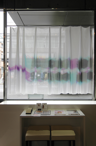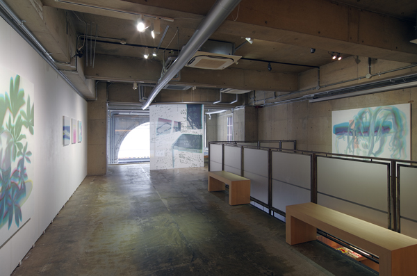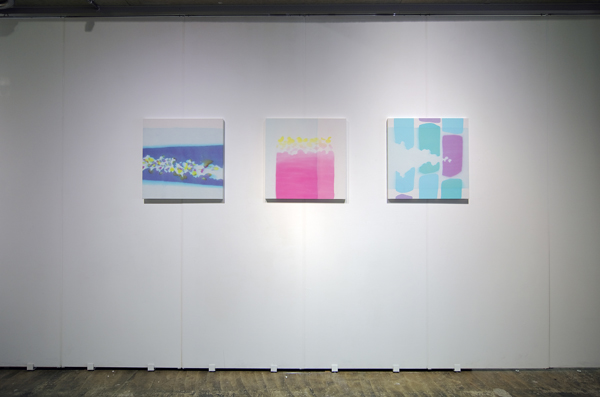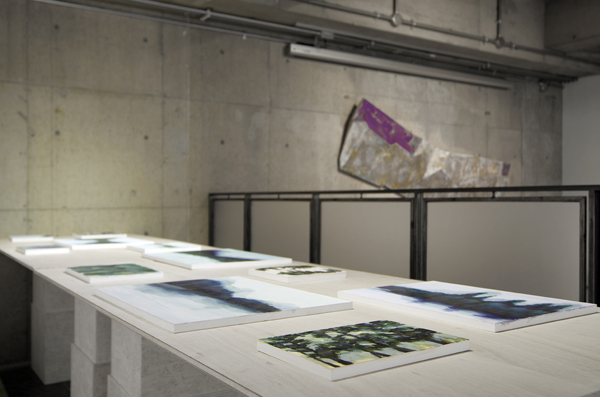 むらたちひろは、ギャラリーのガラス窓と小上がりを用いて、染織表現の特徴を生かした展示プランに現実性があった。タイトルは内省的すぎるが、染織と絵画のボーダーを問う考察・実践の深化を期待したい。