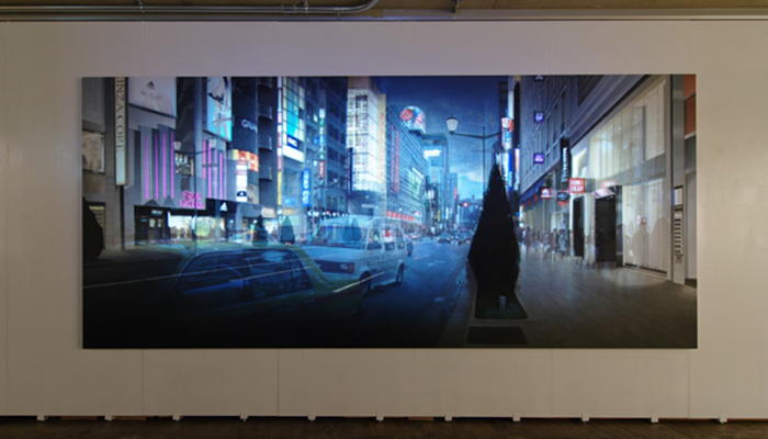 1回目となる今回は、ペインティングやビデオプロジェクション、写真などの様々なメディアを用いて、日常の都市の風景を切り取り再構成した作品などで注目を集める京都在住の美術家・ヤマガミユキヒロを紹介します。 2008年には、同じ場所から見える都市の風景を、絵画と映像という異なる技法で切り取り、再びひとつのキャンバスの上に重ね合わせる作品で「岡本太郎現代芸術賞」特別賞を受賞するなどの高い評価を得ています。