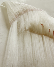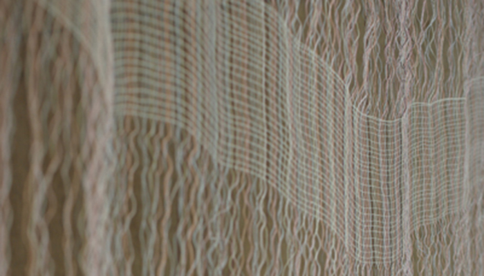 鑑賞者は、全体を眺め、部分に目を凝らし、時にその裏側に視点を移動させることで、「織り」によって作品が併せ持つ、様々な表情を感じることができるのではないでしょうか。 本展では、武田の新作とともに、大型の織り作品《Peeping Through》、《melting cloth》、平織りのタペストリー作品《Point of View》を、ギャラリー空間に合わせて展示いたします。