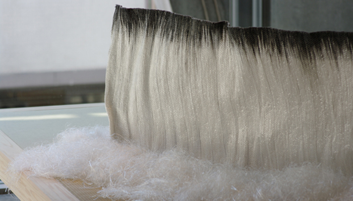 テキスタイルが持つイメージからはほど遠い言葉であった。一見、それはやわらかく透明感を漂わせて眼前に現れる。