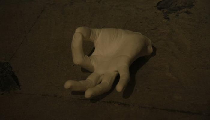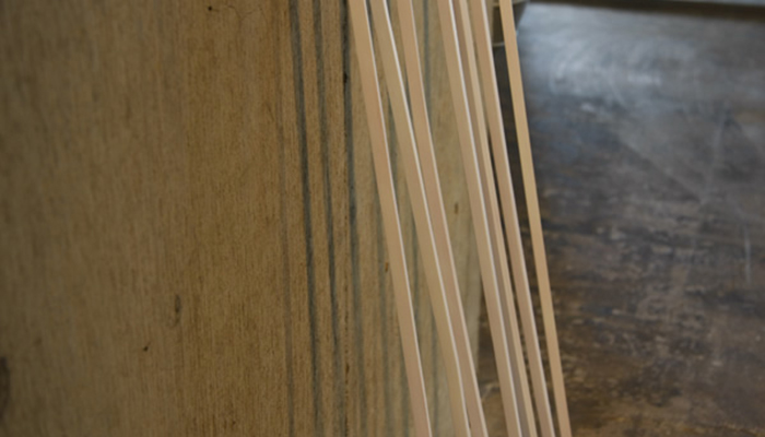 会場には、「道具の話(木の枝で作った棒)」「invisible hand(透明な手)」「ガラス(細長い擦ガラス)」と名付けられた、約7点の作品が配されます。