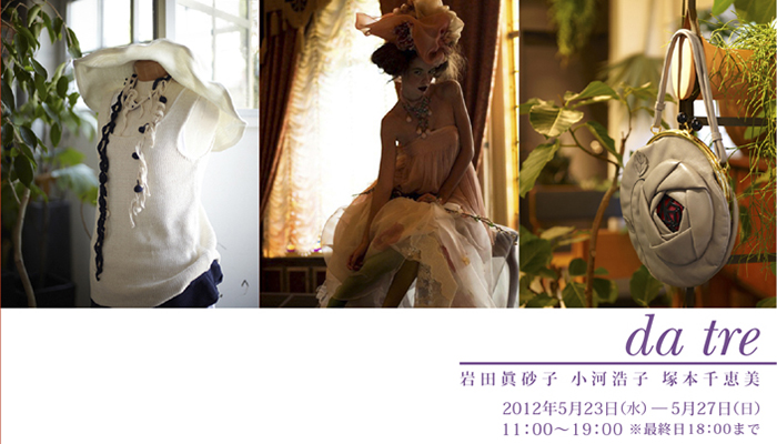 Gallery PARC[グランマーブル ギャラリー・パルク]では、2012年5月23日から27日まで、「da tre:岩田眞砂子・小河浩子・塚本千恵美 展」を開催いたします。