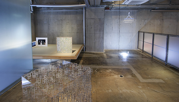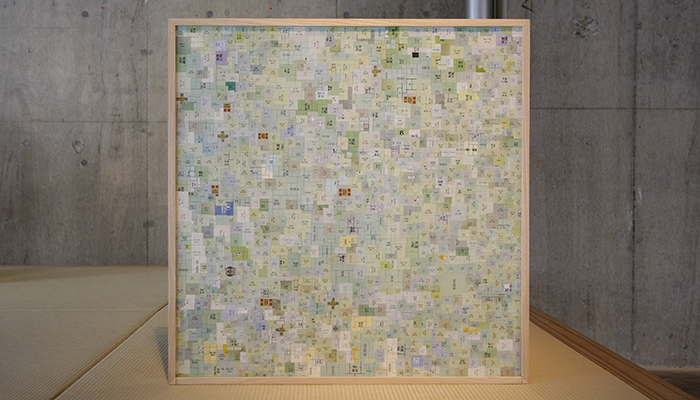 山本聖子(やまもと・せいこ / 京都・1981~)は、2004年に大阪芸術大学を卒業、2006年に京都造形芸術大学大学院を修了後、京都と東京での個展開催の他、2010年に国際芸術センター青森でのレジデンス、2011年にはVOCA展出品をはじめ、六甲ミーツ・アート芸術散歩2011(六甲高山植物園)にて公募大賞、東京ミッドタウンプログラム:ストリートミュージアム(東京ミッドタウン内)にてアートコンペ・グランプリを受賞するなど、高い評価を獲ています。とりわけ、不動産の挟み込みチラシにある「間取り図」を丁寧に切り取り、ラミネートパウチして再度切り抜いた無数のパーツを立体へと構成する一連の作品は、私たちの生活空間の画一性とともに、一見すると無機的なタテとヨコの線へと還元された「間取り図」が、なおも見せる有機的な美しさをあわせて見ることができます。