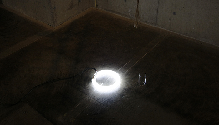 フレームとして、幾何学的な形として、ただただ物質としてそこに存在する。幾何学的なかたちに無性に憧れる。それはあらゆるくだらなさを超えた世界があることを示唆してくれる。しかしそんな憧れを抱きながら、同時に日々の欲求を否定することもできない。時に円をつるつると思い、時にざらざらと思い、時に手ざわりを否定しながら、自分に都合よく解釈しながら生きている。