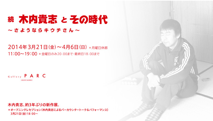 ギャラリー・パルクでは、2014年3月21日[金・祝]から4月6日[日]まで、木内貴志による約3年ぶりの個展「 続 木内貴志とその時代 ~さようならキウチさん~ 」を開催いたします。