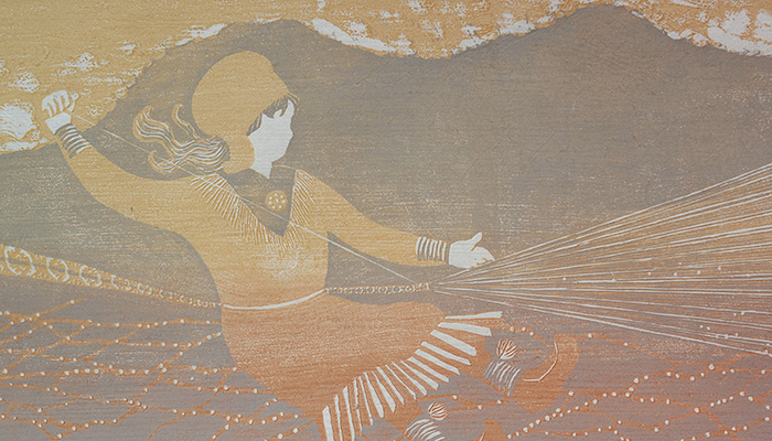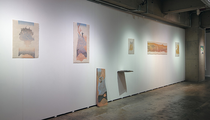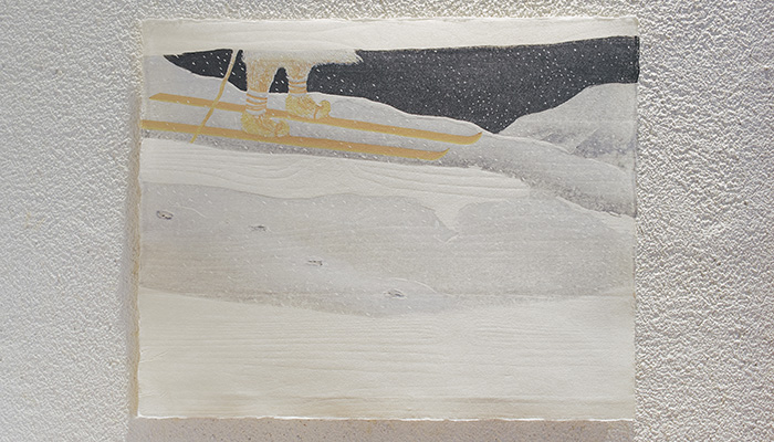 本展では、なかでもトナカイの遊牧生活を営む彼らと関わりの深い手工芸品ドゥオッジ(Duodji)にまつわる言葉を書き留めたものを基に、木が版木となって再び木に戻る「彫り進み」による水彩木版画による作品を中心に発表します。