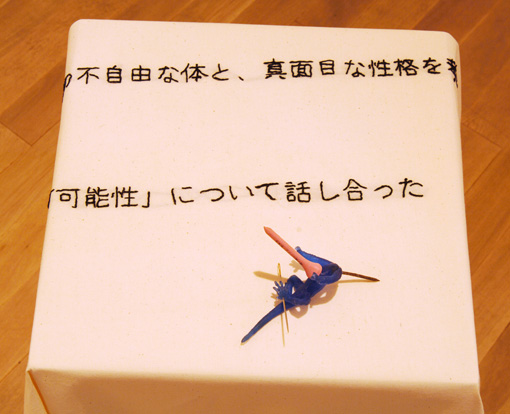 私は「物語をつくる」という事を強く意識しながら、作品中に言葉を用いて作品を制作しています。