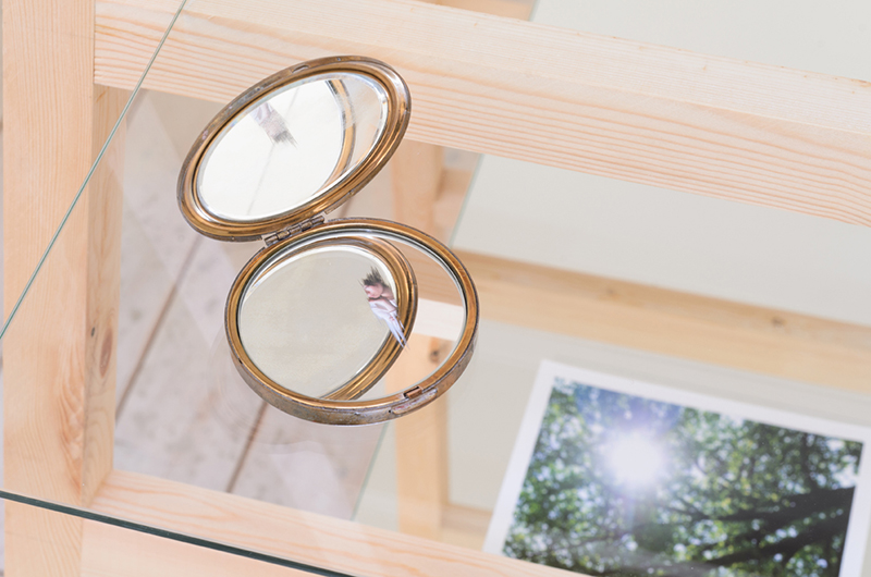 また、この作品を 制作する中で、光とフィルム、鏡と写真、映像の映り込みや反射など、ある像が鏡や光を通して別の媒体に「うつる」ことに関心をもちはじめ、「うつす」行為に焦点をあてゼラチンシルバープリントやトレース によるドローイングなど、いくつかのメディアを選び制作しています。描く方法について: