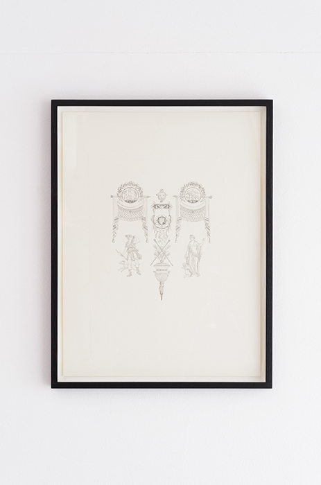 また、このプロセスにおいて西山は「うつす」へも興味を寄せています。プリントされた既存のモチーフを西山の手によりうつしとるトレースドローイングによる作品 は、うつす行為の中に回避し難い僅かな像のズレ(対象との距離)を孕むものであり、西山はこうした「うつす」行為が「人の関係の間にある距離の曖昧さ」へと繋 がるものであると捉えています。同時にゼラチンシルバープリントやトレースドローイング、鏡や写真、物質への映り込みや光の反射などを要素に、ひとつの像が別の 媒体に「うつる」ことへの着目は、作品の在り方をフレームにより切り取られたひとつの物質に限定するのではなく、空間におけるそれら相互の関わり(距離)へと展開させています。