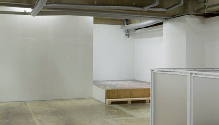 本展「白」で見せる明楽の取り組みは、ギャラリー・パルクをホワイトキューブ化するというシンプルなものです。これは多くの要素が混在するパルクの特性に対し「白」という色彩による描画を試みる行為でもあり、美術の制度において「観るべきものが不在の無」としての「白」による空間を提示することで、鑑賞者に「観る」という行為と意味を能動的に迫ります。
