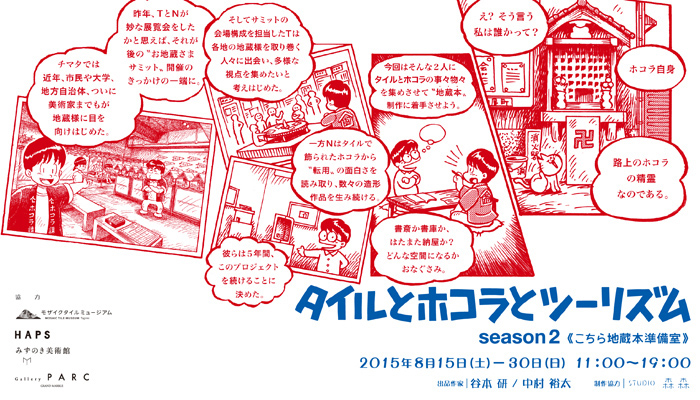 Gallery PARC[グランマーブル ギャラリー・パルク]では、2015年8月15日(土)から8月30日(日)にかけて谷本 研と中村裕太による「タイルとホコラとツーリズム season2《こちら地蔵本準備室》」を開催いたします。