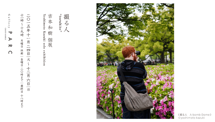 Gallery PARC[グランマーブル ギャラリー・パルク]では、2015年11月24日(火)から12月6日( 日)まで、吉本和樹による個展「撮る人“toruhito”」を開催いたします。