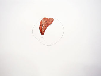 川内は「たべること」に対する自身の感覚と周囲とのズレをテーマにしたドローイングなど、「生」に対する実感が反映された平面作品を主に制作する。