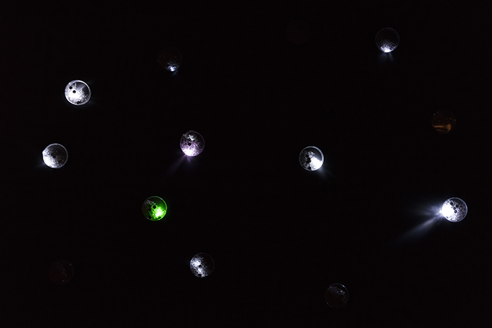 これらシンプルでいてユニークなアプローチによる作品は、消費のためにつくりあげられたイメージの氾濫に加担する「私(私たち・消費者)」に向けられたチクっとした批評性や、フワッとしたファンタジーの領域にある宇宙の姿や仕組みを研究し、それらを手の届く(即物的な)素材や現象に置き換えて、目の前に出現させているものです。
