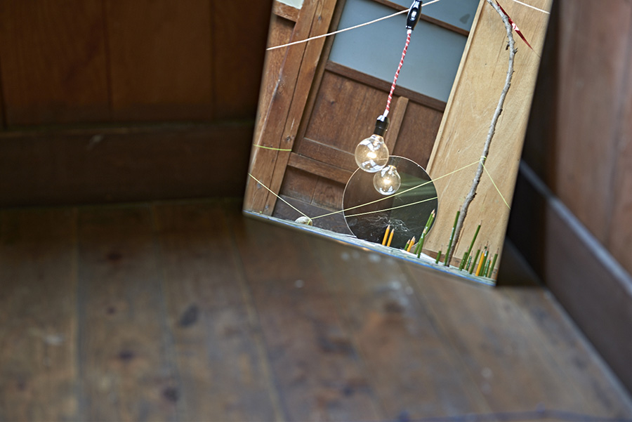 小出は日常で目にした現象や、自身の記憶、体験を軸としたインスタレーションを制作。様々なオブジェが連なる風景は、異なる時間や場所、記憶を内包する世界を出現させ、個人の記憶に働きかけます。