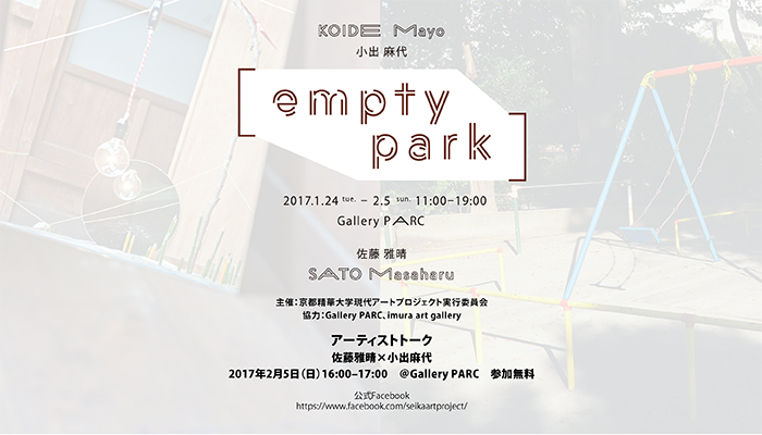 Gallery PARC[グランマーブル ギャラリー・パルク]では、2017年1月24日(火)から2月5日(日)まで、京都精華大学現代アートプロジェクト実行委員会の主催による[empty park]を開催いたします。