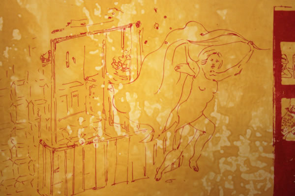 断片的なテキストをつなぎ合わせて再構築された愛の物語を主題とする楠本孝美と、様々な絵画の中に描かれる男女の愛の関係を、たっぷりのユーモアを含ませて取り上げる但馬摩衣子。それぞれの個性的なテーマへのアプローチとともに、多様な版画表現の世界をお楽しみください。