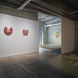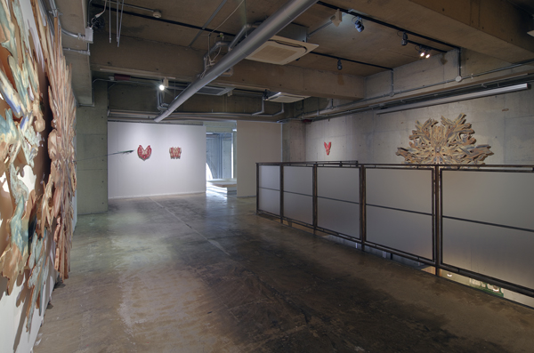 むらたちひろは、ギャラリーのガラス窓と小上がりを用いて、染織表現の特徴を生かした展示プランに現実性があった。タイトルは内省的すぎるが、染織と絵画のボーダーを問う考察・実践の深化を期待したい。