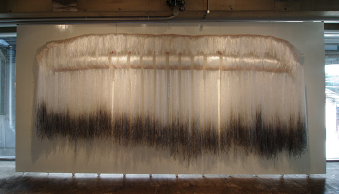 テキスタイルが持つイメージからはほど遠い言葉であった。一見、それはやわらかく透明感を漂わせて眼前に現れる。