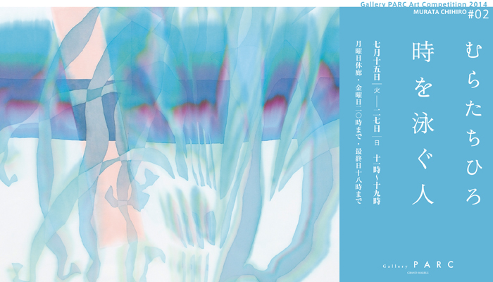 Gallery PARC Art Competition 2014 #02となる本展「時を泳ぐ人:むらたちひろ murata chihiro exhibition」では、新作を中心に、パルクの空間を活かしたとした展示により、むらたの染織・絵画をめぐる思考をなぞりながらも、そこから次への展開を模索します。