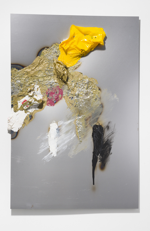 漆喰パネルの上で画用紙を燃やし、煤や焦げといった火の痕跡によって描画を重ねた最初期の平面作品をはじめ、積層した紙の塊を燃やし、花弁のように開いた灰を見せる立体作品《 trans 》。1枚の紙片が燃え尽きる経過を長時間露光により撮影した《 trace 》などの写真作品。無数のビニルやフィルムなどを画面上で融解させ、それらをまるで絵具のように扱いながらひとつのオブジェクトへと変貌させる近年の《 meltrans 》などからは、田中が火を『消失』のみならず『変化』や『融合』による『生成』の現象として捉える視点を見ることができます。